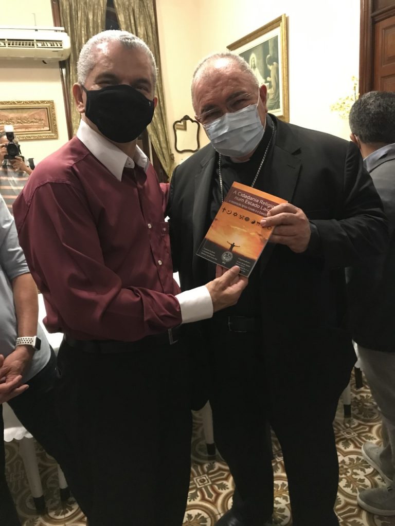 Dr. Gilberto Garcia, Presidente da Comissão de Direito e Liberdade Religiosa do IAB (Instituto dos Advogados Brasileiros), presenteando com ‘Obra Coletiva’ o Cardeal Dom Orani João Tempesta, Arcebispo do Rio de Janeiro, em Jantar de Confraternização com Líderes Eclesiásticos e Juristas Religiosos, na residência do Cardeal, alusivo ao ‘Diálogo Inter-religioso, na Sociedade Carioca