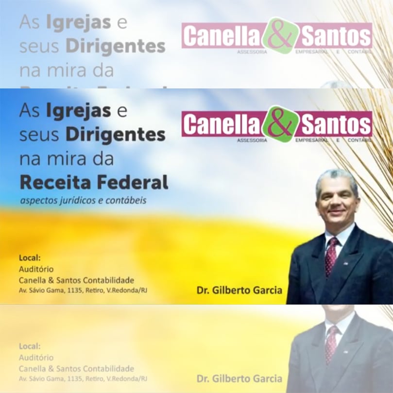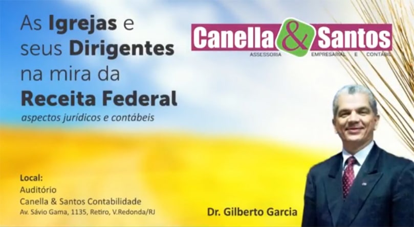 Compartilhamos o Link do Vídeo da palestra promovida pelo Escritório Contábil Canella & Santos, em Volta Redonda/RJ, ministrada pelo advogado e professor de direito Gilberto Garcia, com o tema ‘As Igrejas e seus Dirigentes na mira da Receita Federal’.