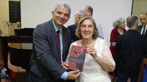 Dr. Gilberto Garcia e Diaconisa Helga Kepler Fanini, com o livro “Coração de Um Evangelista”, que