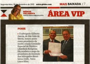 “O advogado Gilberto Garcia, de São João de Meriti, tomou posse como presidente da recém-criada [...]