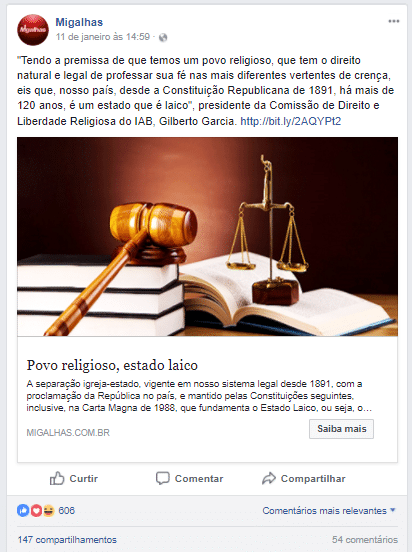 Fonte: Portal Migalhas (Disponível em: https://www.facebook.com/PortalMigalhas/posts/1681700388561896)