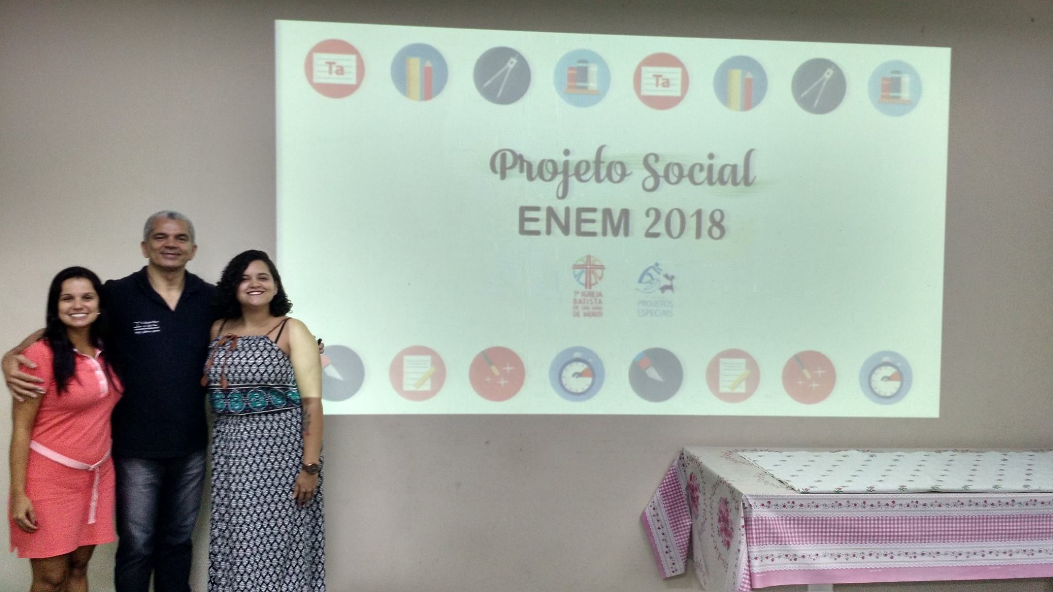 Numa atuação comunitária a PIB São João de Meriti/RJ, proposição que o Pr. Claudio Souza, pastor-presidente, denomina como cumprimento do Mandato Cultural do Evangelho de Cristo, junto à sociedade, deu inicio, pelo segundo ano consecutivo, a mais uma turma do Projeto Social ENEM/2018, coordenado pela Profa. Alana Cristine, o qual é uma das ações sociais do Ministério de Projetos Especiais, liderado pela Profa. Tatiana Soares, que, desta forma, retoma uma atuação da Igreja na década de 90, eis que, logo após o encerramento da parceria com a Clinica Médica REECONTRO, fruto do convênio com a PIB Niterói/RJ, ocorreu a implementação do Serviço Social Batista Meritiense – SABAME, com um grupo de voluntários comprometidos.