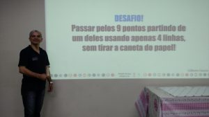 Em 2018 para a de abertura do Projeto Social ENEM, na verdade uma reflexão motivacional, o convidado foi o Dr. Gilberto Garcia, mestre em direito e professor universitário, o qual buscou incentivar alunos e professores a focar nos sonhos a serem conquistados, enfatizando a necessidade de estar dispostos, para, em situações especificas, a “pensar fora da caixa”, tendo lhes proposto um exercício, o “Desafio dos 09 Pontos”, ou seja, juntar 09 pontos usando 04 retas sem retirar a caneta do papel, ressaltando a indispensabilidade de ter ousadia para ultrapassar os limites mentais que são impostos socialmente.