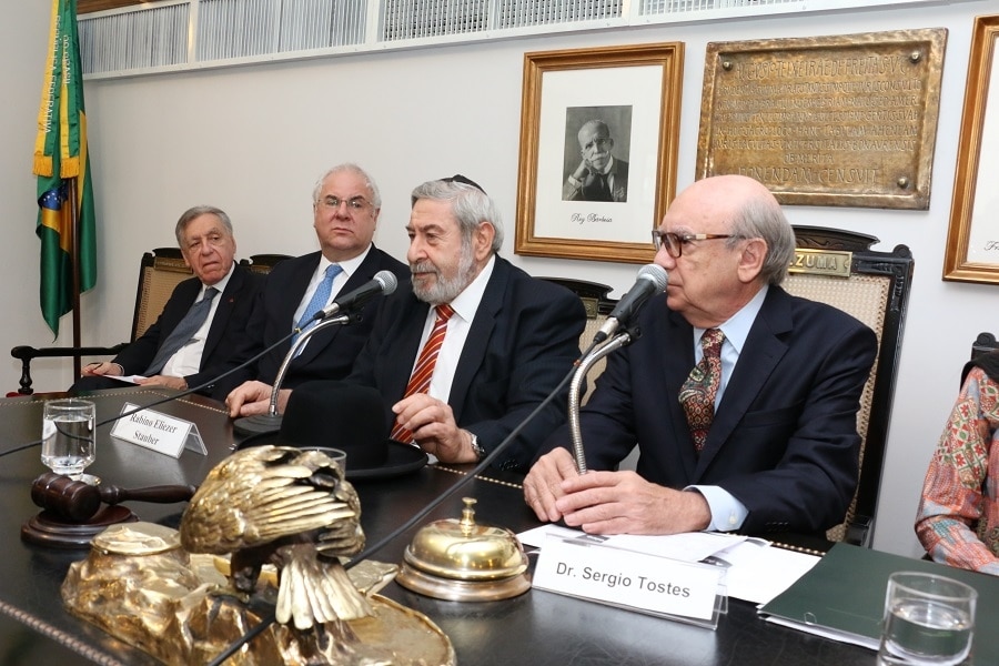 A palestra do rabino Eliezer Stauber, da Sinagoga de Copacabana, sobre A Arbitragem no Direito Hebraico – uma tradição judaica de mais de 5 mil anosmarcou o Ciclo de Debates da Arbitragem na História do Direito promovido, nesta quinta-feira (20/10), no plenário do Instituto dos Advogados Brasileiros (IAB), pela Comissão de Mediação, Conciliação e Arbitragem do IAB, presidida por Sergio Tostes, e o Centro Brasileiro de Mediação e Arbitragem (CBMA). De acordo com Tostes, que conduziu a sessão, “o ilustre rabino expôs com riqueza de detalhes a prática da arbitragem pela comunidade judaica como uma forma de solução pacífica de conflitos, citando dados históricos e fatos concretos com invulgar capacidade de comunicação”.